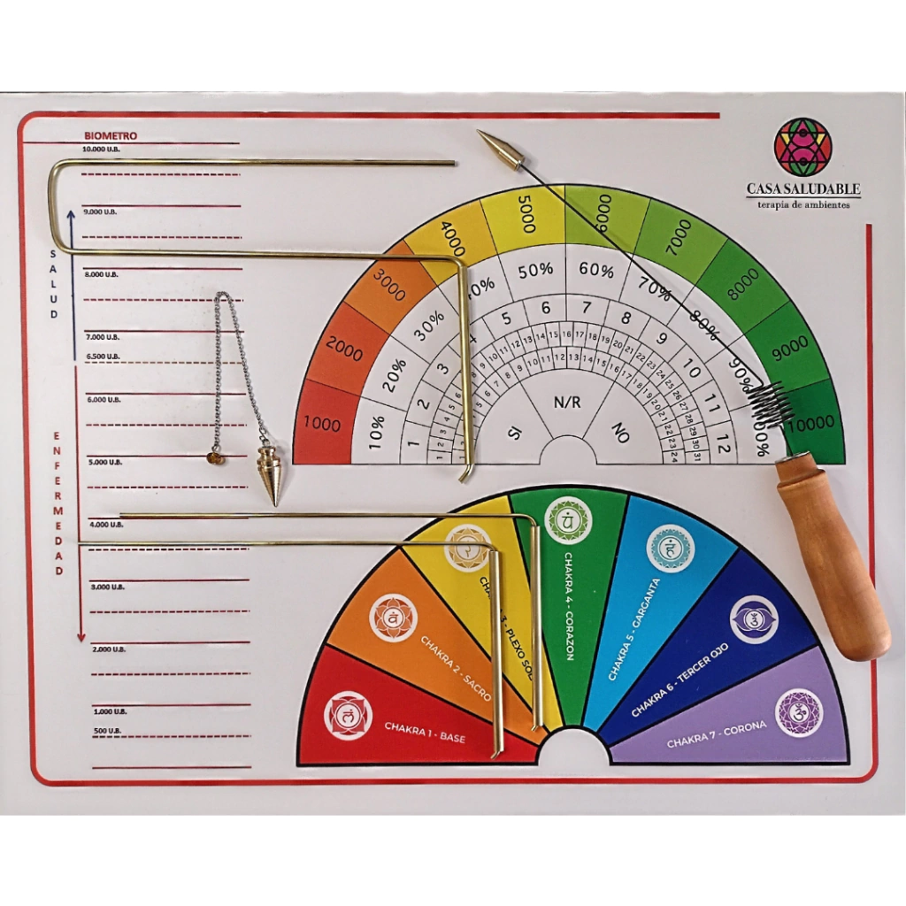 COMBO SUPER COMPLETO de RADIESTESIA !! (Biómetro+Aurameter+Varillas Duales+Varilla Replegada+Péndulo de Bronce)